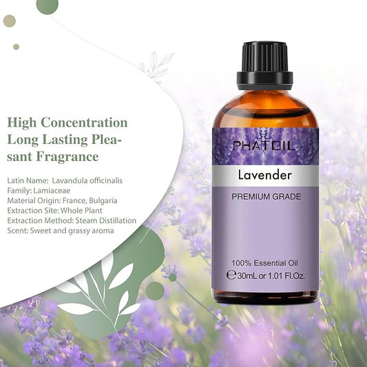Lavender Essential Oil 1.01fl.oz/30ml, PHATOIL Lavender Oils Long Lasting Scents for Aromatherapy, Diffuser, DIY Soap and Candle Making