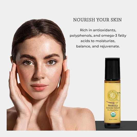 Silk Road Organic Marula Seed & Lavender Essential Oil, 100% Pure USDA Certified Aromatherapy, Deep Hydration for Face, Body, Lips, Hair, Nails - 10 ml Roller