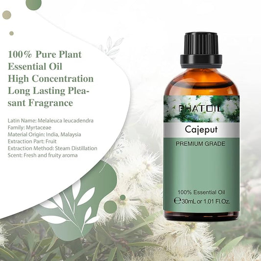 Cajeput 1.01fl.oz Essential Oil, PHATOIL Pure Aromatherapy Oils for Diffuser, Humidifier, Perfect for DIY Soap, Candle, Bath Bombs Making(30ml)
