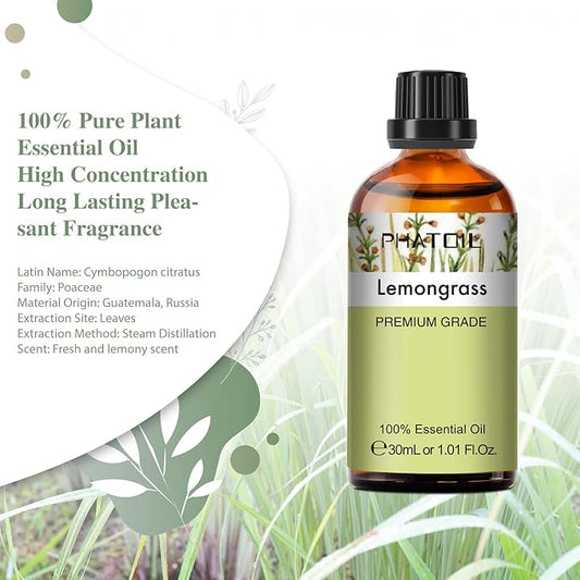 Lemongrass Essential Oil 1.01fl.oz/30ml, PHATOIL Lemongrass Oils Long Lasting Scents for Aromatherapy, Diffuser, DIY Soap and Candle Making