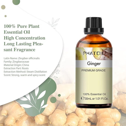 Ginger Essential Oil, 1.01Fl.Oz (30ML) PHATOIL Pure Essential Oil Singles for Aromatherapy Diffusers, Humidifiers, Great for DIY Candle and Soap Making, Gift for Friend