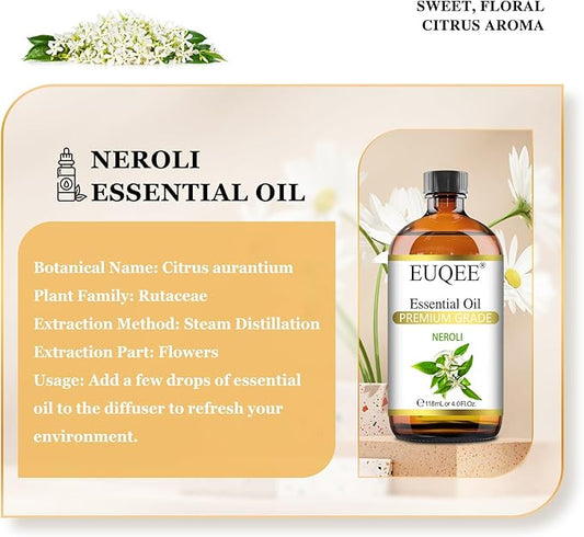 Neroli Essential Oil 118mL / 4oz Pure Neroli Oil Premium Essential Oil for Diffuser, Aromatherapy, DIY Soap