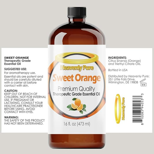 Sweet Orange Essential Oil 16 oz Large Bottle for Diffuser, Candle, Soaps, Aromatherapy - 473 ml