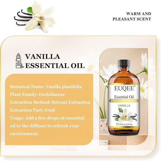 Vanilla Essential Oil 118 ml Premium Vanilla Oil with Glass Dropper, Great for Diffusers, Aromatherapy, Candle Making, DIY Soap - 4Fl.Oz