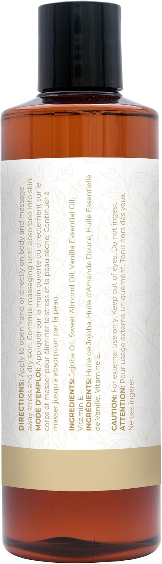 Vanilla Massage Oil for Massage, Body Massage Lotion; Jojoba, Sweet Almond Oil for Skin, Vitamin E, and Pure Vanilla Essential Oil, Body Oil Aceite para Masajes Relajantes