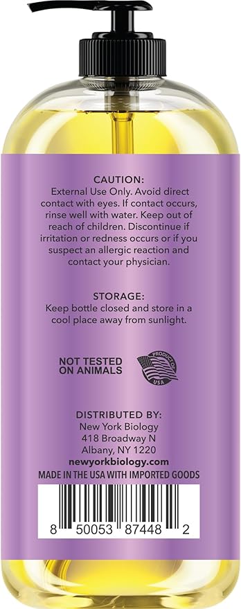 New York Biology Sore Muscle Massage Oil 8 Fl Oz – Made with 100% Natural Oils – Soothing Body Massage Oil - Absorbs Easily