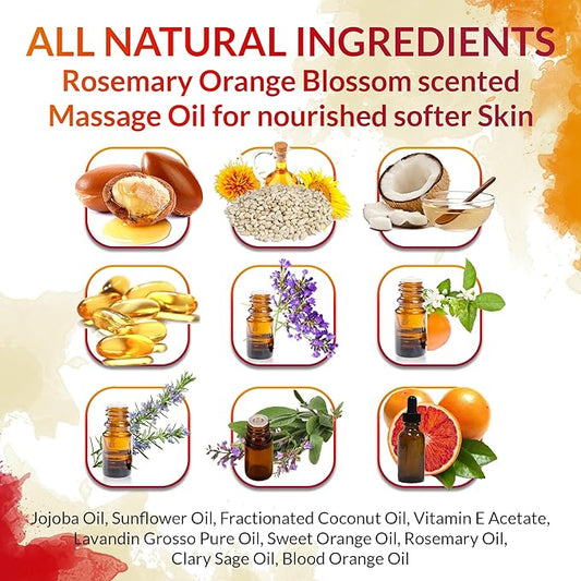 Massage Oil for Couples, Women & Men (1 Bottle, 8 fl oz) - Fox Envy Orange Blossom with Rosemary Scented Sensual Oil with Coconut Oil & Jojoba Oil - Enhances Stimulation for The Body & Muscles