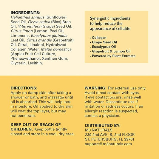 Anti Cellulite Massage Oil - Body Oil and Massage Oil for Massage Therapy | Infused with Collagen and Stem Cell Skin Tightening Cellulite Cream and Massage Lotion for Women 16 Fl Oz by M3 Naturals