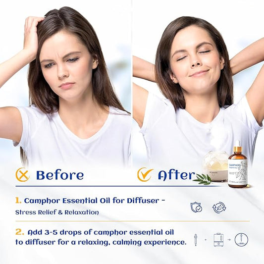 HIQILI 100ML Camphor Essential Oil Pure, 100% Undiluted for Skin, Diffuser, Aromatherapy - 3.38 Fl Oz