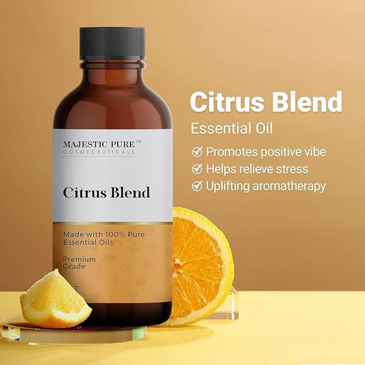 Majestic Pure Citrus Essential Oil Blend | 100% Pure & Natural for a Joyful, Positive Aroma | Pink Grapefruit, Orange, Spearmint, Lemon Essential Oil for Diffusers & Aromatherapy | 1oz