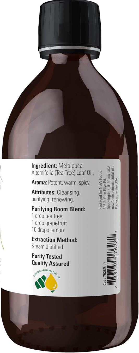 NOW Foods Essential Oils, Tea Tree Oil, Cleansing Aromatherapy Scent, Steam Distilled, 100% Pure, Vegan, Child Resistant Cap, 16-Ounce