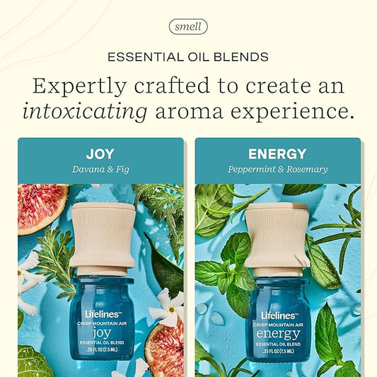 Lifelines Essential Oil Blends, 2-Pack - Blended Essential Oils with Mess-Free Precision Pump for Aromatherapy Diffusers - Long-Lasting Scented Fragrance - Crisp Mountain Air (Joy & Energy)