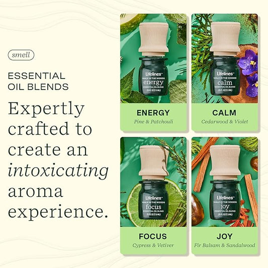 Lifelines Essential Oil Blends, 4-Pack - Blended Essential Oils with Precision Pump for Aromatherapy Diffusers - Long-Lasting Scented Fragrance - Walk in The Woods (Joy, Calm, Focus & Energy)