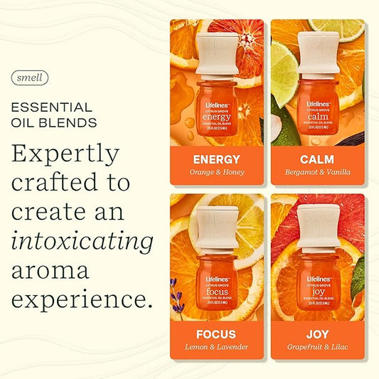 Lifelines Essential Oil Blends, 4-Pack - Blended Essential Oils with Precision Pump for Aromatherapy Diffusers - Long-Lasting Scented Fragrance - Citrus Grove (Joy, Calm, Focus & Energy)