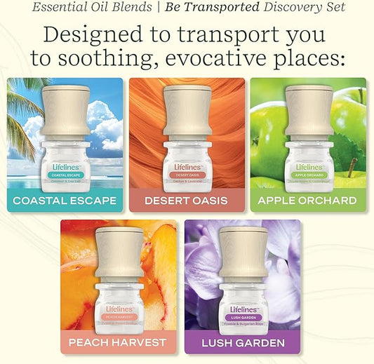 Lifelines Essential Oil Blends, 5-Pack Be Transported Discovery Set - Blended Essential Oils with Precision Pump for Aromatherapy Diffusers - Long-Lasting Scented Fragrance