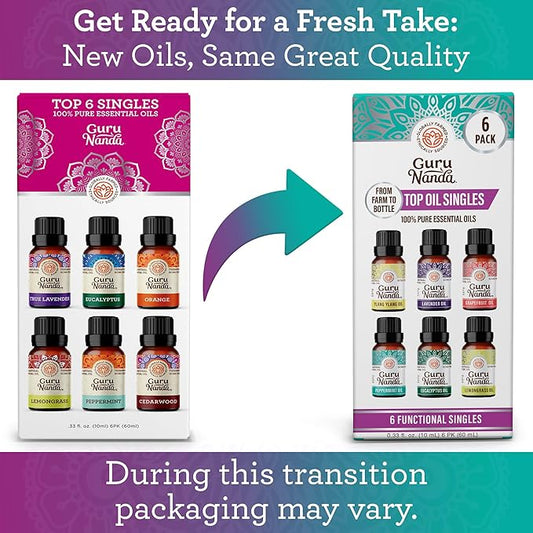 GuruNanda Essential Oils Set for Diffusers, 100% Pure, Aromatherapy, Massage, Candle & Soap Making Lavender, Peppermint, Eucalyptus, Grapefruit, Lemongrass, Ylang Ylang 0.33 Fl Oz (Pack of 6)