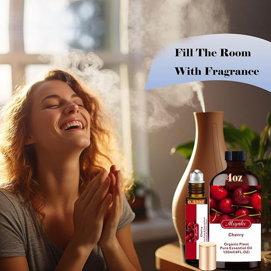 Cherry Essential Oil Roll-On Set (4oz + 10ml)–100% Pure Natural Aromatherapy Oil for Relaxation, Stress Relief, Sleep, Massage, Diffuser, DIY Candles & Soap Making–Home Spa, Yoga, Gifts