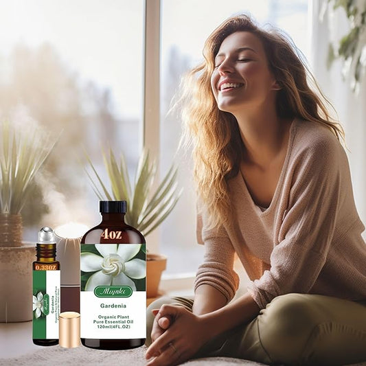 4 Fl Oz/120 ml Gardenia Essential Oil, Send Gift Roll-on (10 ml) - 100% Natural, Aromatherapy, Diffuser, Massage, Yoga, DIY Soap and Candle Making, Fragrance Oils, Spa Skin Care
