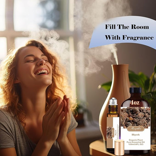 4 Fl Oz/120 ml Myrrh Essential Oil, Send Gift Roll-on (10 ml) - 100% Natural, Aromatherapy, Diffuser, Massage, Yoga, DIY Soap and Candle Making, Fragrance Oils, Spa Skin Care