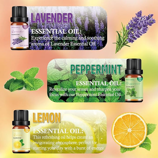 Essential Oils Set - Top 6 Aromatherapy Oils Gift Set, 6 Pack, 10ml (Peppermint, Tea Tree, Lavender, Eucalyptus, Lemongrass, Orange) for Diffusers, Home Fragrance, Massage