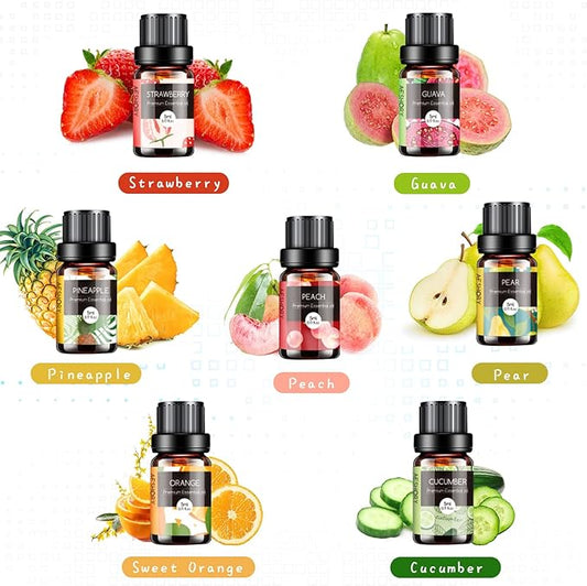 Fruity Essential Oils Set - TOP 14 Fragrance Oil for Diffusers, Candle Making Includes Strawberry, Apple, Pineapple, Cucumber Melon, Cherry, Mango, Lemon, and Orange Scented Aromatherapy Oils (5ml)