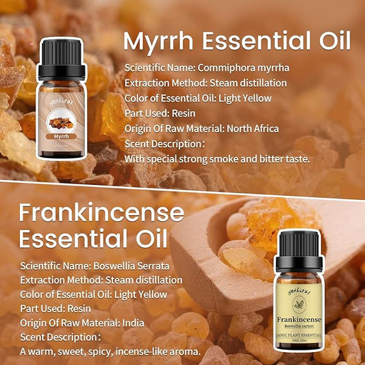 yethious Frankincense and Myrrh Oil Frankincense Essential Oil Myrrh Oils for Diffuser & Aromatherapy, Candle, Soap Candle Making - 2PCS 10ML