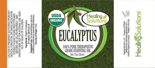 Healing Solutions Eucalyptus Essential Oil 1 oz (30ml), Pure & Organic, Undiluted Eucalyptus Essential Oil for Hair, Diffuser, Skin, & Aromatherapy - Therapeutic Grade