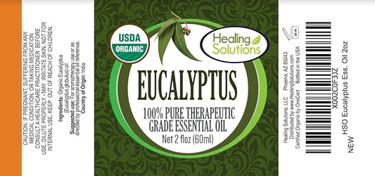 Healing Solutions Organic Eucalyptus Essential Oil 60ml/2oz – Pure Eucalyptus Aromatherapy Diffuser Oil