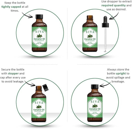 Siva Camphor Essential Oil - 4 Fl Oz – Natural Camphor Oil - for Diffuser, Face, Skin Care, Aromatherapy, Hair Care, Scalp and Body Massage - with Dropper