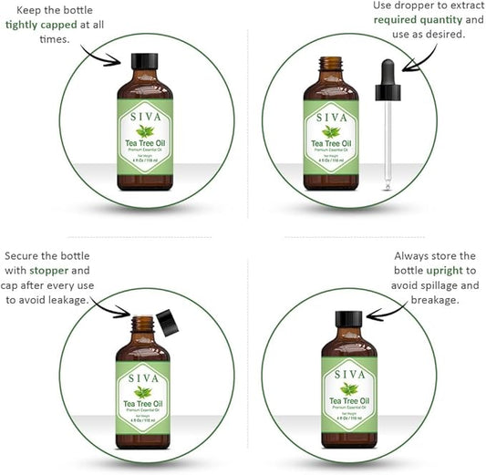 SIVA Tea Tree Essential Oil - 4 Fl Oz – Natural Tea Tree Oil - for Diffuser, Face, Skin Care, Aromatherapy, Hair Care, Scalp and Body Massage - with Dropper