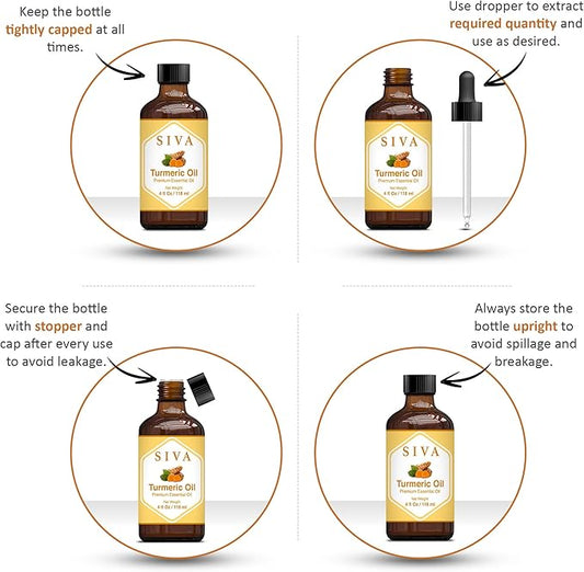 SIVA Turmeric Essential Oil - 4 Fl Oz – Natural Turmeric Oil - for Diffuser, Face, Skin Care, Aromatherapy, Hair Care, Scalp and Body Massage - with Dropper