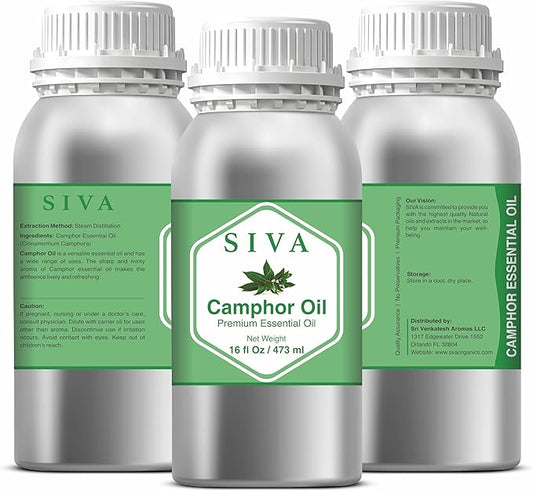 Siva Camphor Essential Oil - 16 Fl Oz – Natural Camphor Oil - for Diffuser, Face, Skin Care, Aromatherapy, Hair Care, Scalp and Body Massage