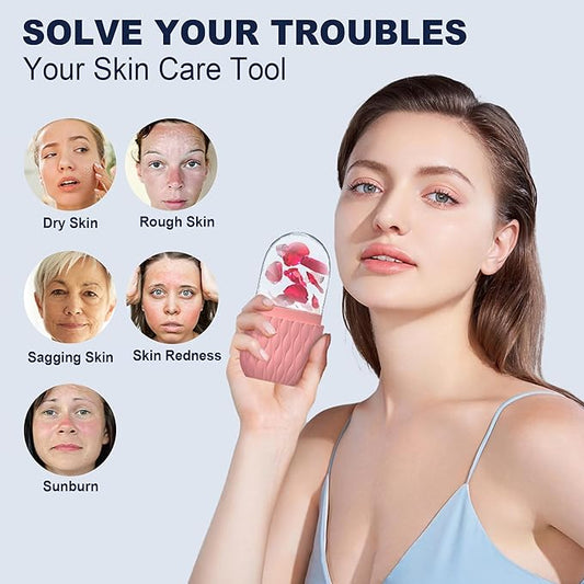 Ice Roller for Face, Eyes & Neck – Reusable Silicone Ice Mold for De-Puffing, Skin Care & Facial Massage (Pink)