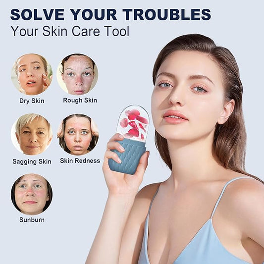 KOGITI Face Ice Roller & Mold - Beauty Facial Massage Tool for Puffiness Relief, Ice Cube Holder (New-Purple)