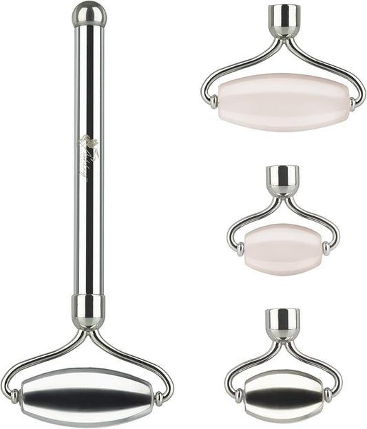 Stainless Steel Ice Roller & Rose Quartz Facial Set | Luxury Skin Care Tools for Lymphatic Drainage, Product Absorption, Skin Tightening, & Relaxation