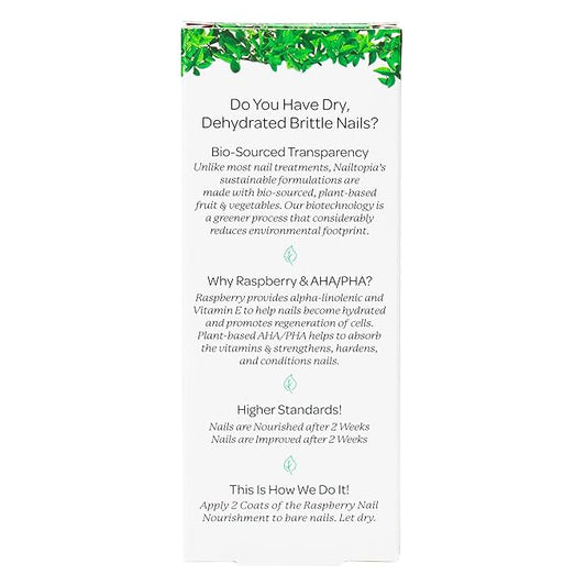 Nailtopia Raspberry Nail Nourishment - Revitalizing Nail Strengthener Treatment for Stronger Nails - Growth Serum for Damaged, Thin, Cracked Nails - Vitamin Infused, Bio Sourced, and Vegan - 0.41 oz