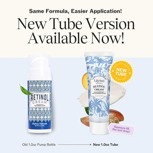 LilyAna Naturals Anti Aging Retinol Face Cream for Women – Wrinkle & Neck Cream for Firming, Retinol Moisturizer for Face with Hyaluronic Acid, Hydrating Night Cream, Collagen Boost (Bottle, 1.0oz)