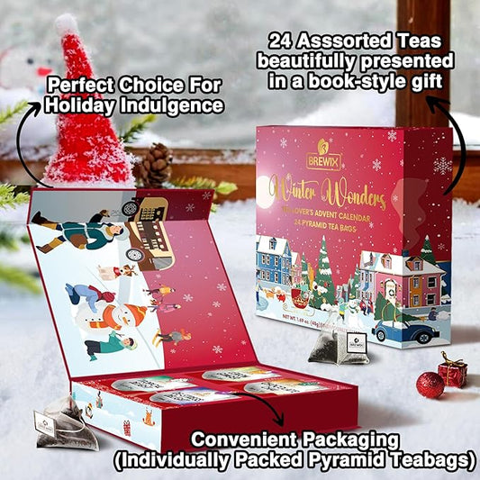 BREWIX, Herbal & Tea Gift Calendar, Advent Calendar 2024 Tea Bags | Limited Edition I 24 Unique Flavors | Best for Birthdays, Anniversaries & Holidays | Christmas Advent Calendar 2024 for Adults, Adult Women and Men
