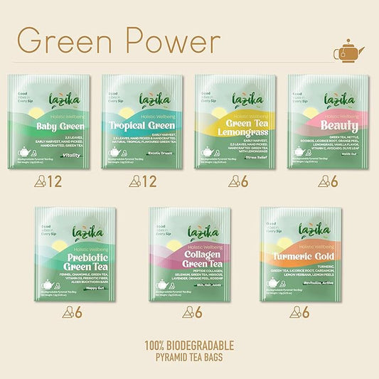 Lazika Green Tea Variety Pack with Lovely Presentation Box, 54 Counts, Green Tea Assortment Gift Set, Premium Collection with Pyramid Infuser Bag, Early Harvest, Handcrafted