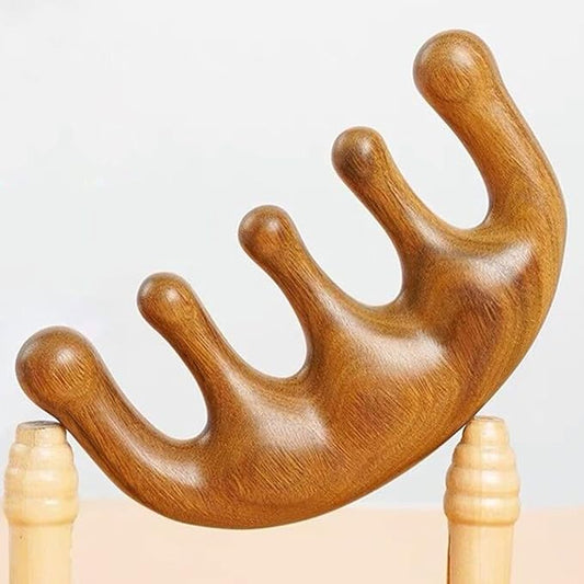Massage Comb,100% Natural Handmade Pure wood Five-tooth meridians comb Scraping Multi-Functional Handheld Head Massage Tool,Hand Made Sandalwood Comb for Head Caring Relaxation Acupoint Massage