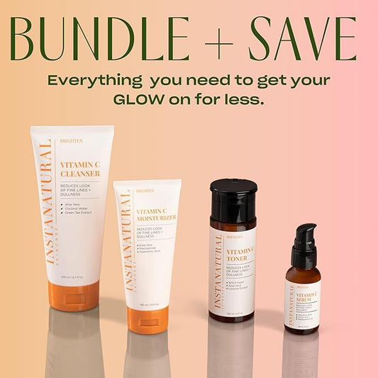 InstaNatural Vitamin C Four Step Skin Care Set, Skincare Routine, Brightens, Hydrates, Prevents Signs of Aging, Face Wash, Toner, Serum and Moisturizer, with Botanical Extracts