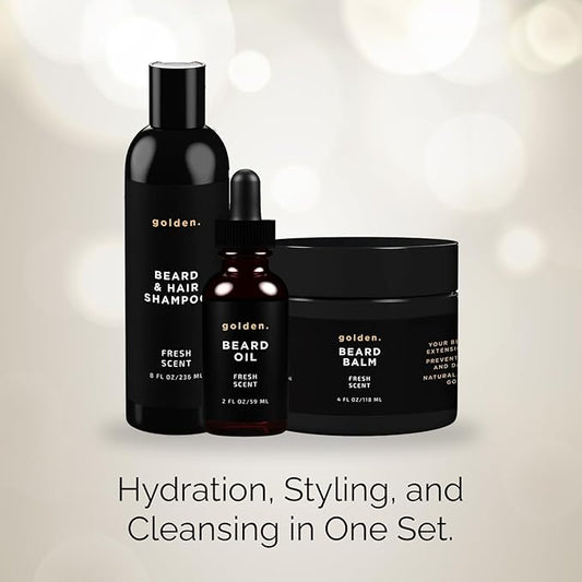 Golden Grooming Co. Everyday Beard Bundle – Complete Beard Care Set | Includes Beard Oil, Balm & Shampoo (XL, Fresh Scent)