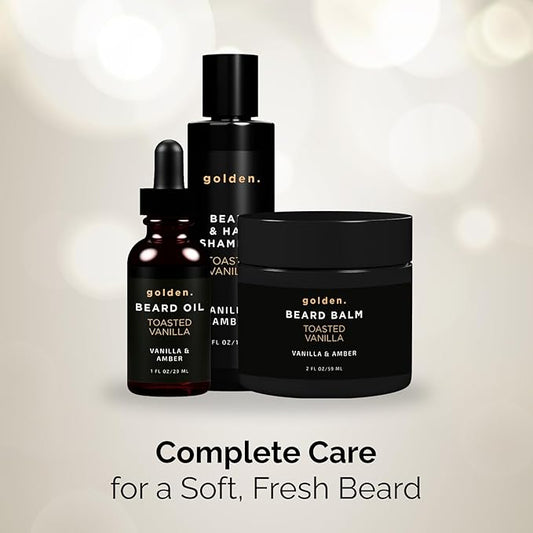 Golden Grooming Co. Everyday Beard Bundle – Complete Beard Care Set | Includes Beard Oil, Balm & Shampoo (Regular, Toasted Vanilla)