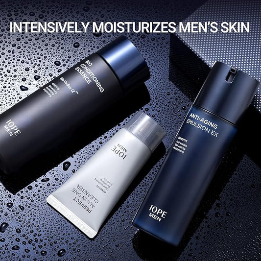 IOPE MEN BIO Anti-aging & Moisturizing Set, Cleanser, Emulsion, Conditioning Essence Serum and Soothing Aftershave, HOMME Korean Skincare by Amorepacific