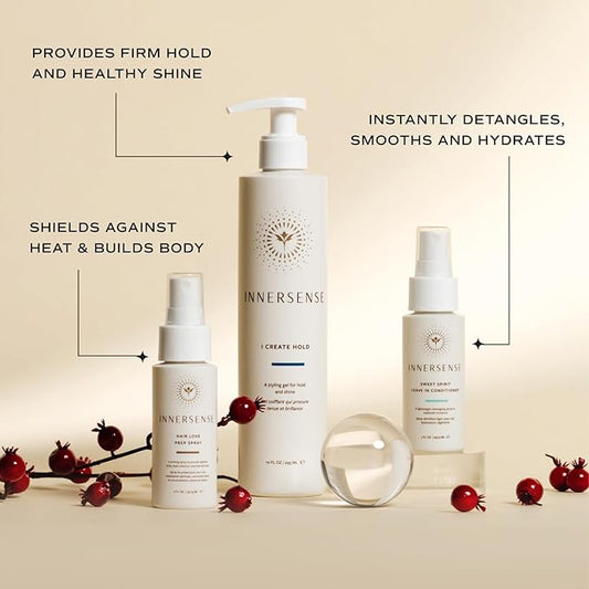 INNERSENSE Organic Beauty - Sleek Stylers Set | I Create Hold, Sweet Spirit Leave-In Conditioner, Hair Love Prep Spray | Non-Toxic, Cruelty-Free, Clean Haircare (3 piece set)