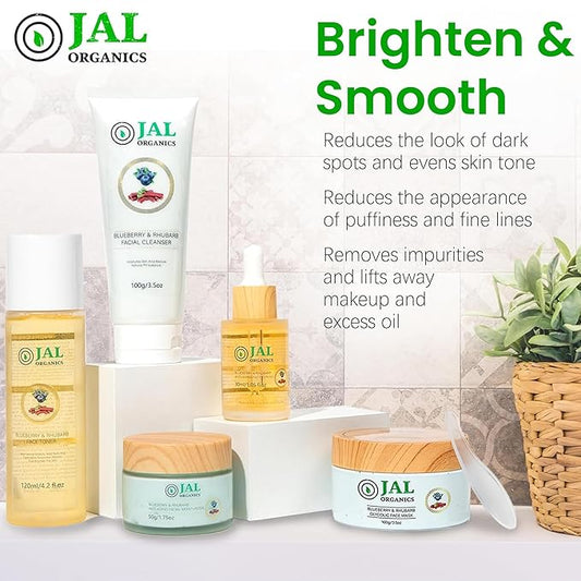 5 in 1 Blueberry & Rhubarb Korean Skin Care Set, Face Moisturizer, Glycolic Clay Face Mask, Serum, Cleanser & Toner for All Skin Types, Anti Aging Skin Care Sets & Kits, Facial Routine Kit for Women