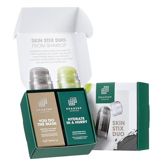 Mens Skincare Sticks Duo, Vegan Formula Including a Moisturiser Stick and Charcoal Face Mask Stick, 2-Step Skincare Kit Perfect for Him. Aka. SHAKEUP THE SKIN STIX DUO