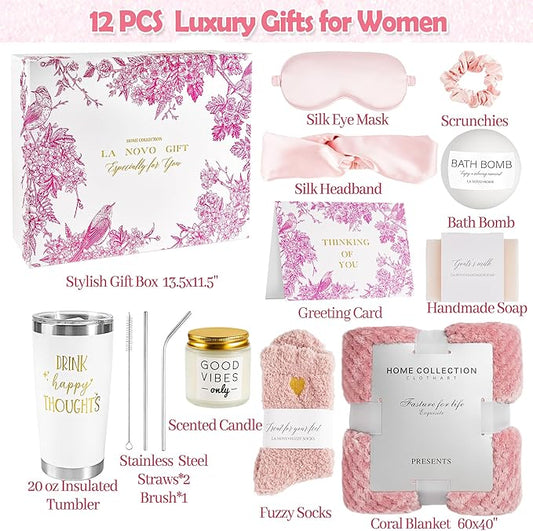 Gift Basket for Women, Pink Self Care Spa Package, Thinking of You, Elegant Birthday Gifts for Mom, Sister, Wife, Best Friend