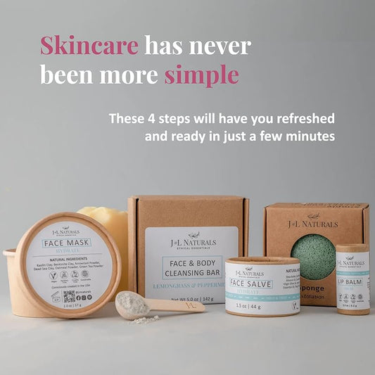 J&L Naturals Exceptional Skin Regimen Kit With Cleansing Bar, Face Salve, Konjac Sponge, Lip Balm | For Oily, Dry, Mature, and Combination Skin | Zero Waste (Hydrate (dry skin), Exceptional)