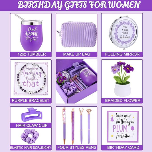 Abbylike Birthday Gifts for Women Purple Self Care Get Well Soon Gift Baskets and Sets for Mom Make up Care Package Box for Her Wife Friends Sister Girlfriend Christmas Valentines Mothers Day